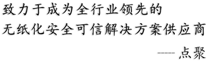 点聚始终致力于全行业的无纸化建设,为银行、保险、证券、通信、广电、酒店等行业实现了轻型化转型,把“助力于全行业安全可信的无纸化建设”作为公司的业务发展方向和技术指导路线。为合作伙伴提供全方位的技术支撑,共同为客户创造价值。