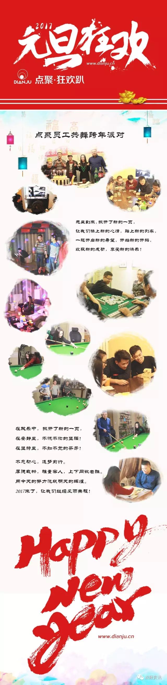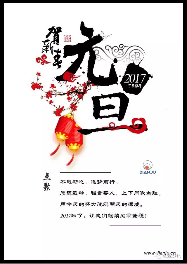铛铛铛!我们迎来了充满希望的2017年。值此元旦佳节,北京点聚向大家致以最诚挚的节日问候,祝福各位事业兴泰,身体安康,家庭敦睦,生活美满!
