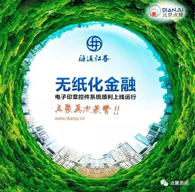 海通证券携手点聚推进行业创新,引入点聚电子签章平台,实现技术与业务的智能互动,在办理业务上面使用电子签章、单据,让科技引领业务创新发展。