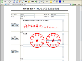 基于Web网页的HTML环境,允许用户在IE浏览器中,通过网页的脚本执行签章操作, 并结合电子签名技术实现对网页表单添加签名信息,以保证网页表单的安全和可鉴别。